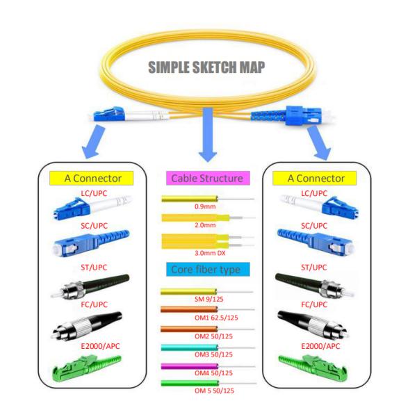 Fiber type : Single Mode: G. 652D, G. 655, G. 657A2, etc. Multi-Mode: OM1(62.5/125), OM2, OM3, OM4, OM5, etc. (50/125)